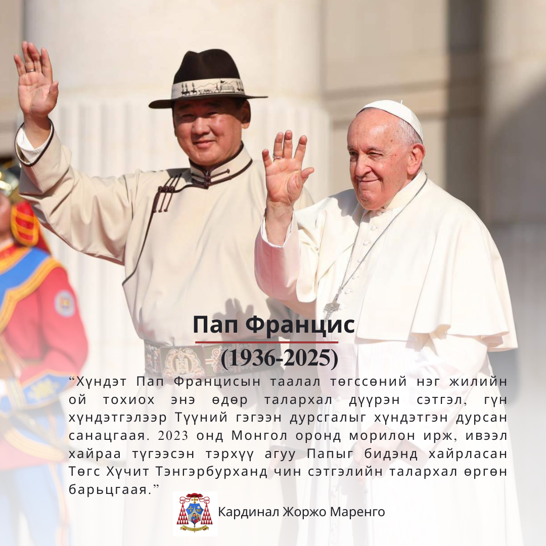 Монгол Улсын Ерөнхийлөгч У.Хүрэлсүх Гэгээн Ширээт Улсын төрийн тэргүүн Пап XIV Леотой уулзлаа • 2 сар 20, 2026 • Хороонууд, Шашин хоорондын болон Христийн сүмүүдийн яриа хэлэлцээ, харилцан ойлголцол
