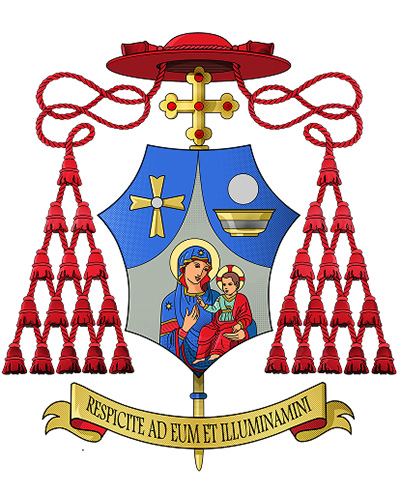 The coat of arms of H.E. Mons. Giorgio Marengo, Apostolic Prefect of Ulaanbaatar (Mongolia), Titular Bishop of Castra Severiana