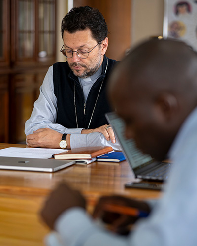 Cardinal Giorgio Marengo, I.M.C., Apostolic Prefect of Ulaanbaatar, Mongolia, was born on June 7, 1974 in Cuneo, Italy. After graduating from the Regio Liceo-Ginnasio C. B. Cavour in Torino, he studied philosophy at the Theological Faculty of Northern Italy from 1993 to 1995 and theology at the Pontifical Gregorian University in Rome from 1996 to 1999. He made his perpetual vows as a member of the Istituto Missioni Consolata, I.M.C. (Consolata Missionaries) on June 24, 2000 and was ordained a priest on May 26, 2001. He continued his studies at the Pontifical Urban University, obtaining a licentiate in 2002 and a doctorate in missiology in 2016.