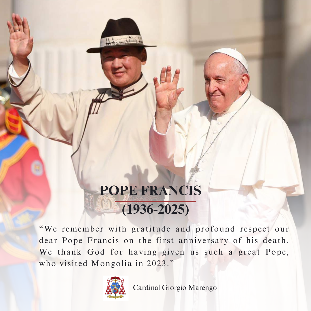 Catholic Church in Mongolia Get Involved Learn More Become Catholic Youth Program “Light Silent Sound” Retreat Center What We Believe Papal Catechesis Parishes Sacrament of Marriage A Place of Compassion House of Mercy Through warm meals, basic medical care, clean clothes, and hot showers, the House of Mercy brings dignity and hope to those most in need. Learn More News See All THE V PLENARY ASSEMBLY OF THE CONFERENCE OF CATHOLIC BISHOPS OF CENTRAL ASIA WAS HELD AND CARDINAL GIORGIO MARENGO ELECTED AS NEW PRESIDENT • 21 April 2026 • News 1st Anniversary of Passing of Pope Francis • 21 April 2026 • News CALENDAR Event Schedule Currently, there are no events planned. Please check back later. Sign Up for Updates Sign up to get news and events updates. Name Email Phone Number Parish
