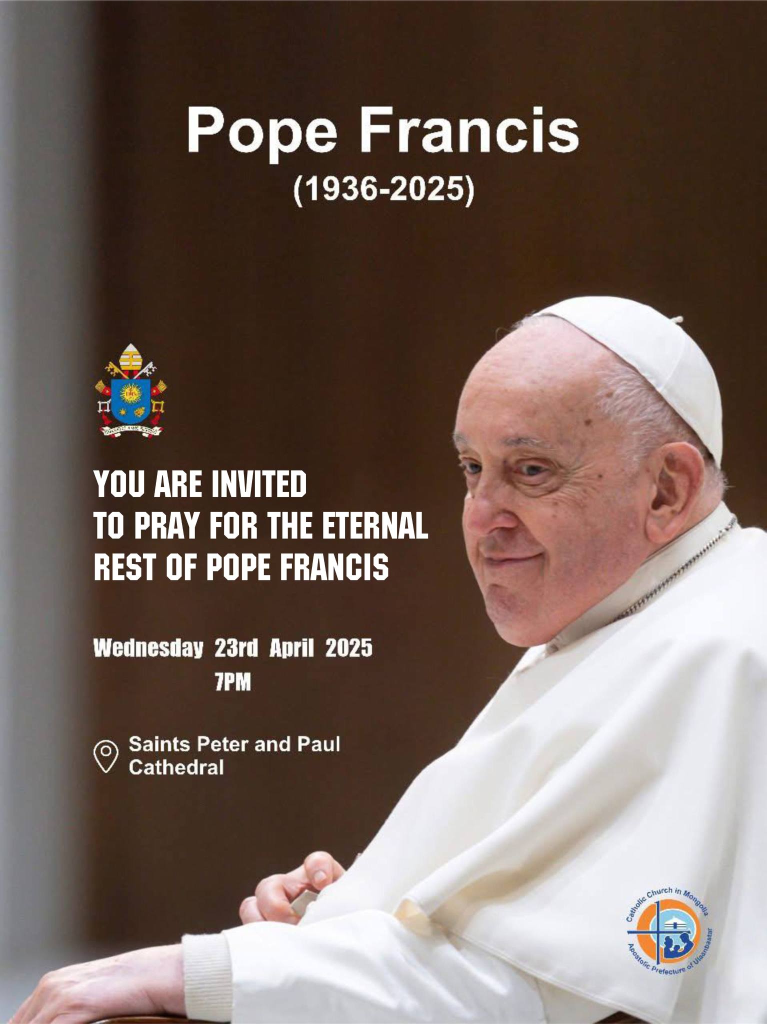 It is with profound sorrow that the Catholic Church and the Apostolic Prefecture of Ulaanbaatar announce the passing of His Holiness Pope Francis, Supreme Pontiff of the Holy See and an eminent figure of our time, who has returned to the house of the Eternal Father.